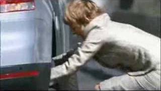 Když žena mění kolo u auta