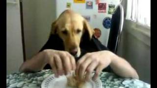 Pes jí rukama